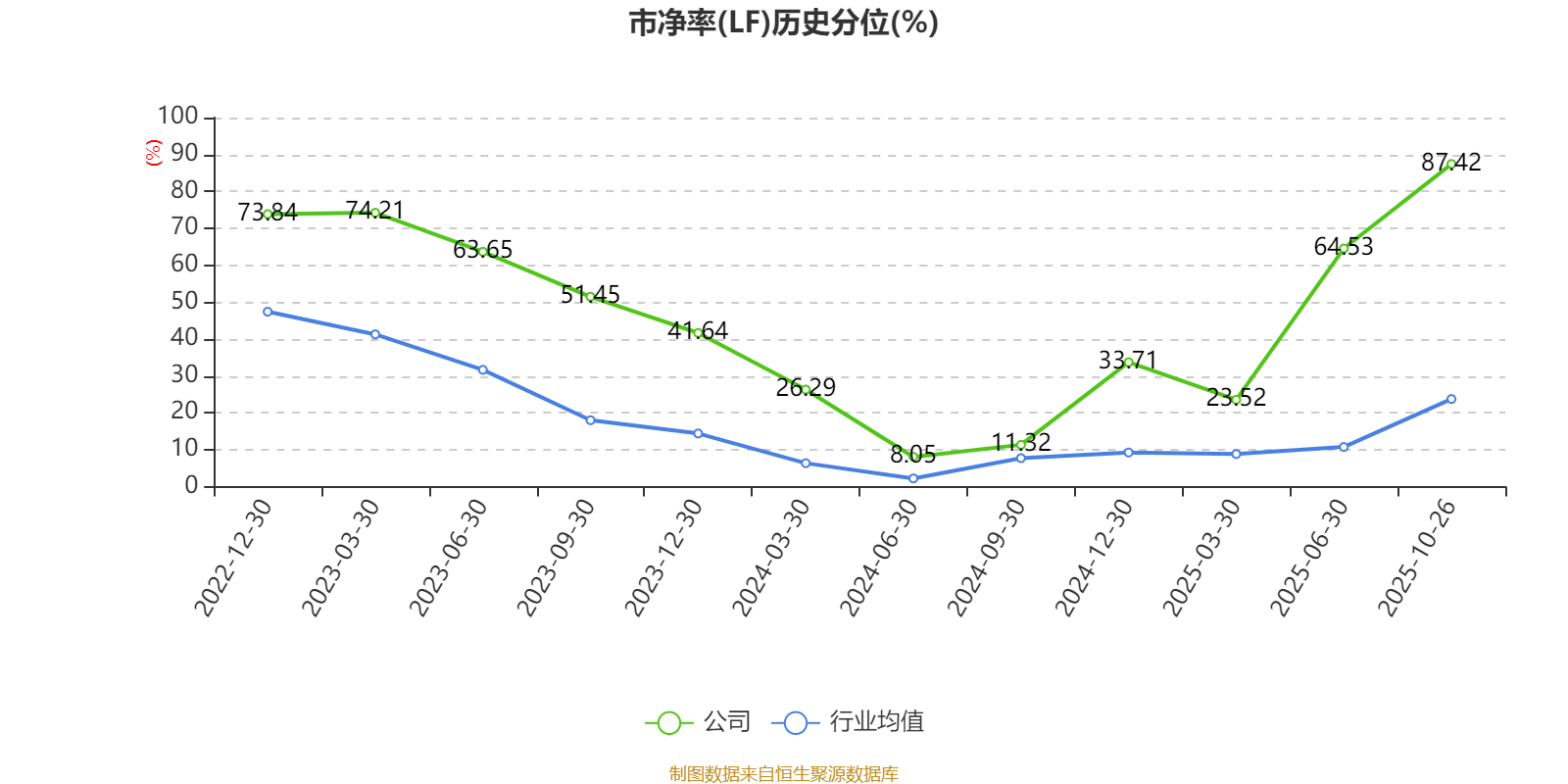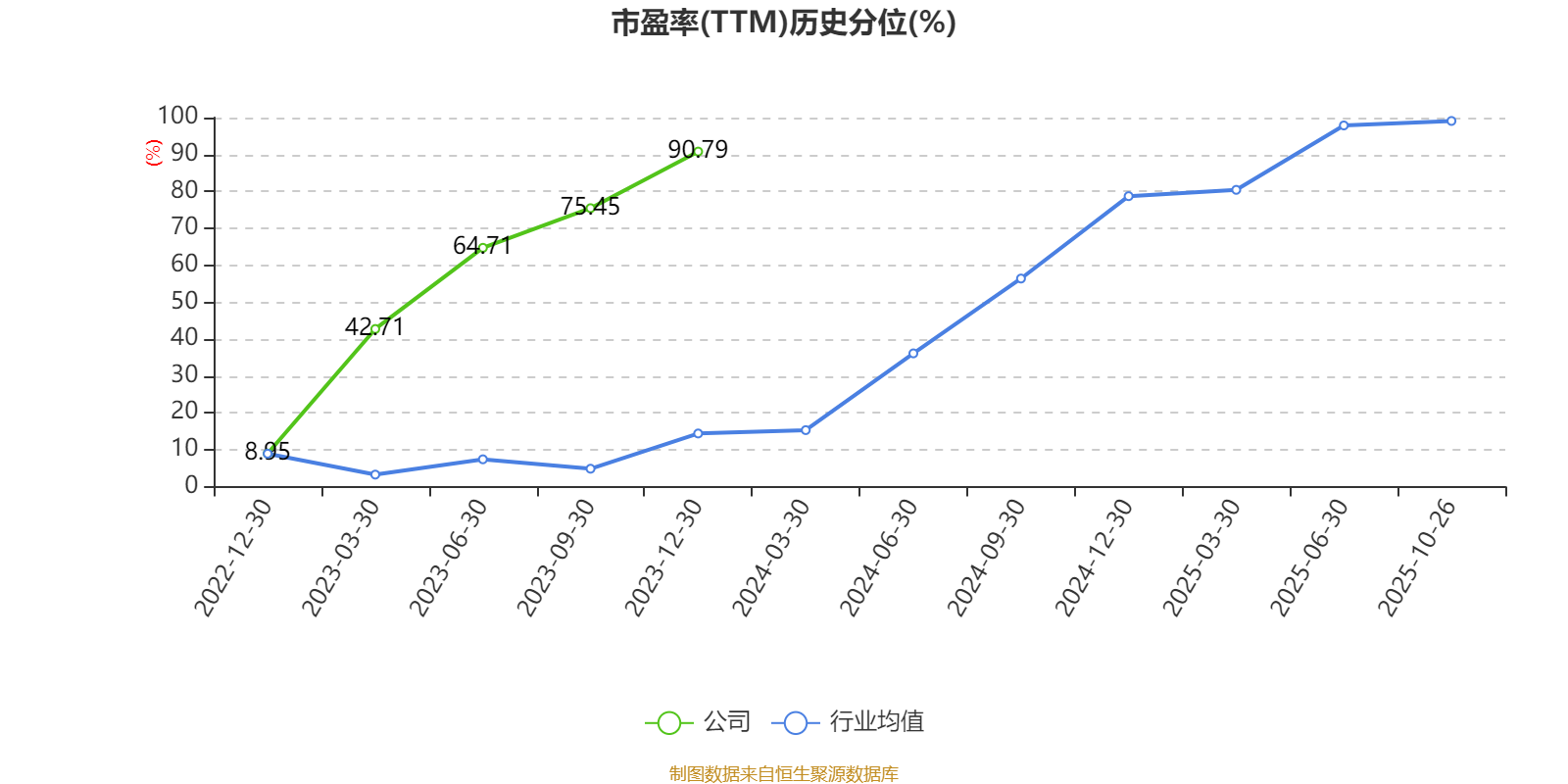 市盈率、市净率为负时,不显示当期分位数,会导致折线图中断。