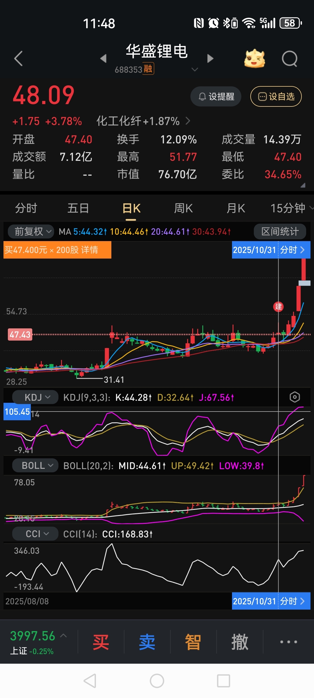 $华盛锂电(SH688353)$ 胆子小就买了2手没想到后面拉涨停