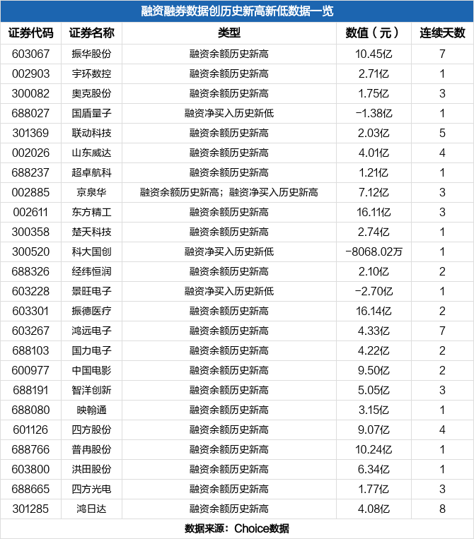 从融资余额增速来看,当日海陆重工、清水源、中毅达等融资余额环比增幅居前,其中海陆重工环比增长达67.31%。融资余额环比增幅前十标的明细如下: