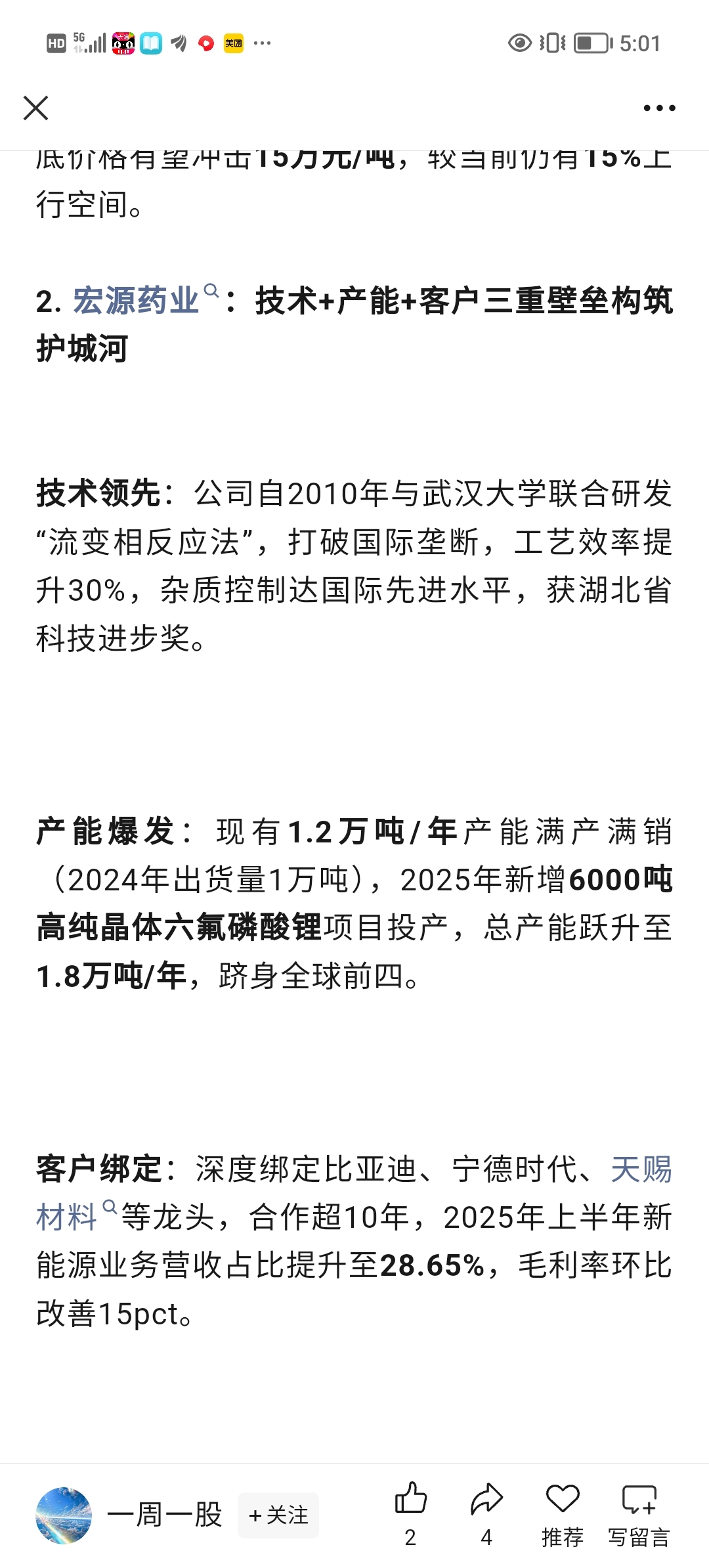 宏源药业六氟磷酸锂全球第四强,股价才二十出头,低估