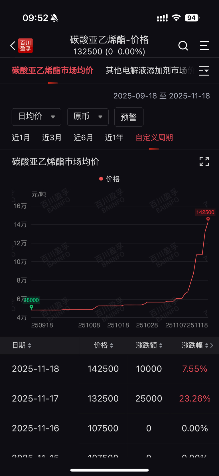 $华盛锂电(SH688353)$ 今天VC涨到145000/吨了