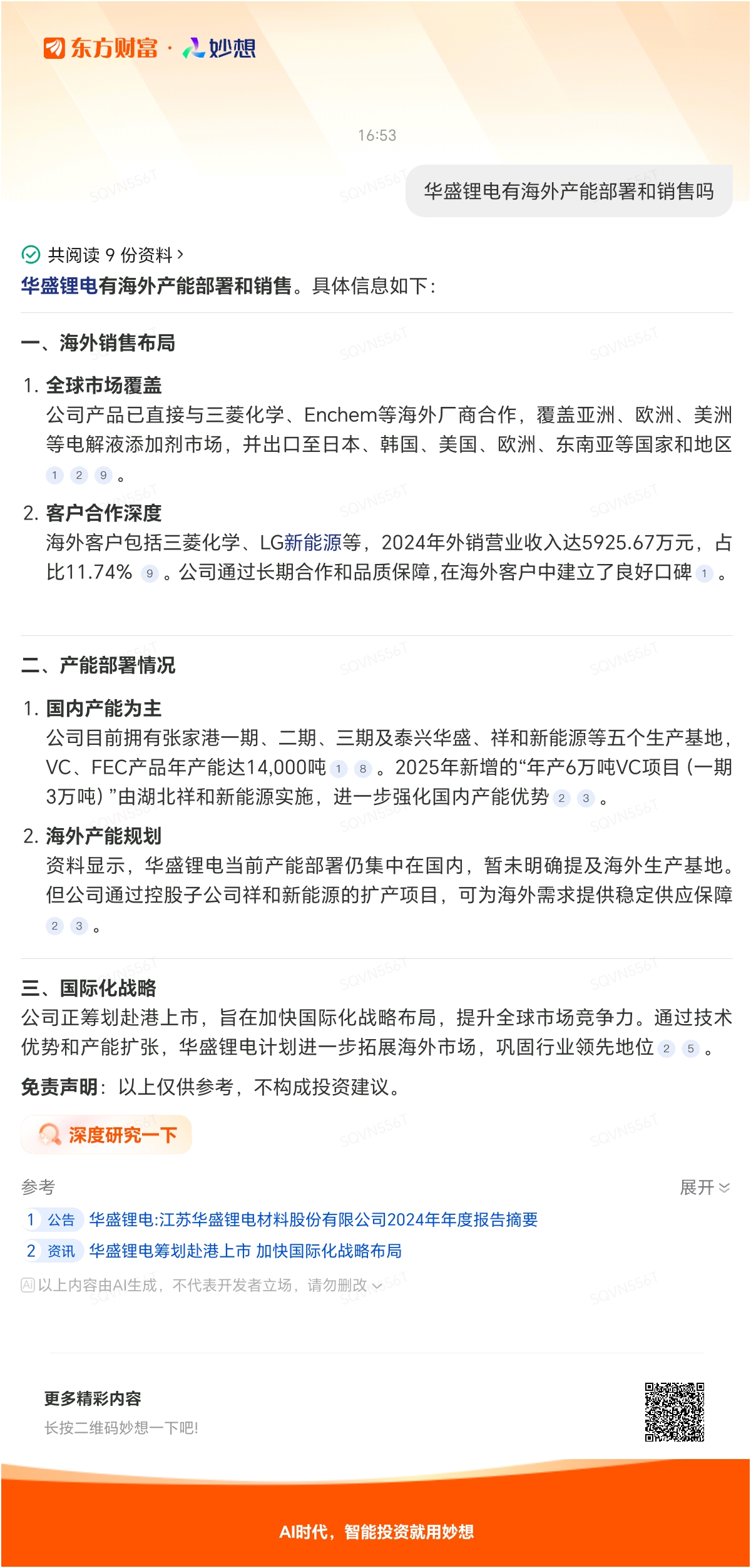 #@妙想,你怎么看?# 妙想一下:华盛锂电有海外产能部署和销售吗