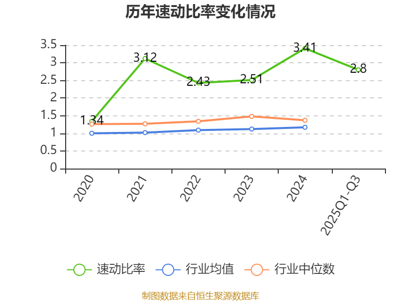 2025年前三季度,公司流动比率为3.26,速动比率为2.8。