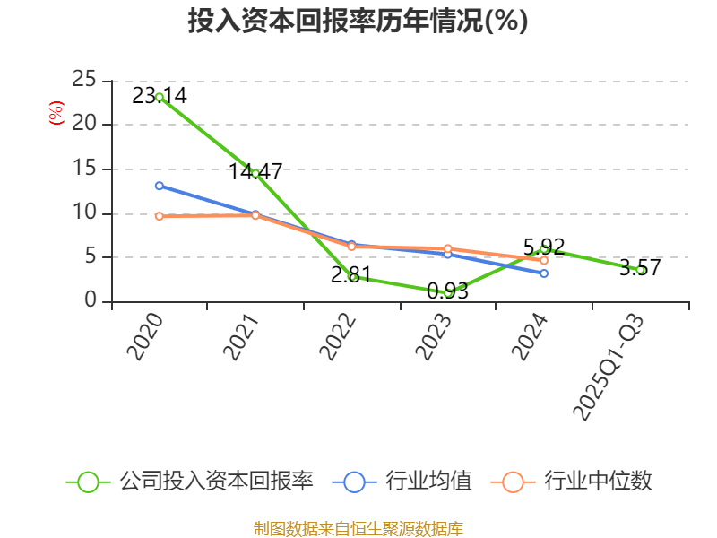 盈利能力方面, 2025年前三季度公司加权平均净资产收益率为4.01%,同比下降0.98个百分点。公司2025年前三季度投入资本回报率为3.57%,较上年同期下降1.2个百分点。