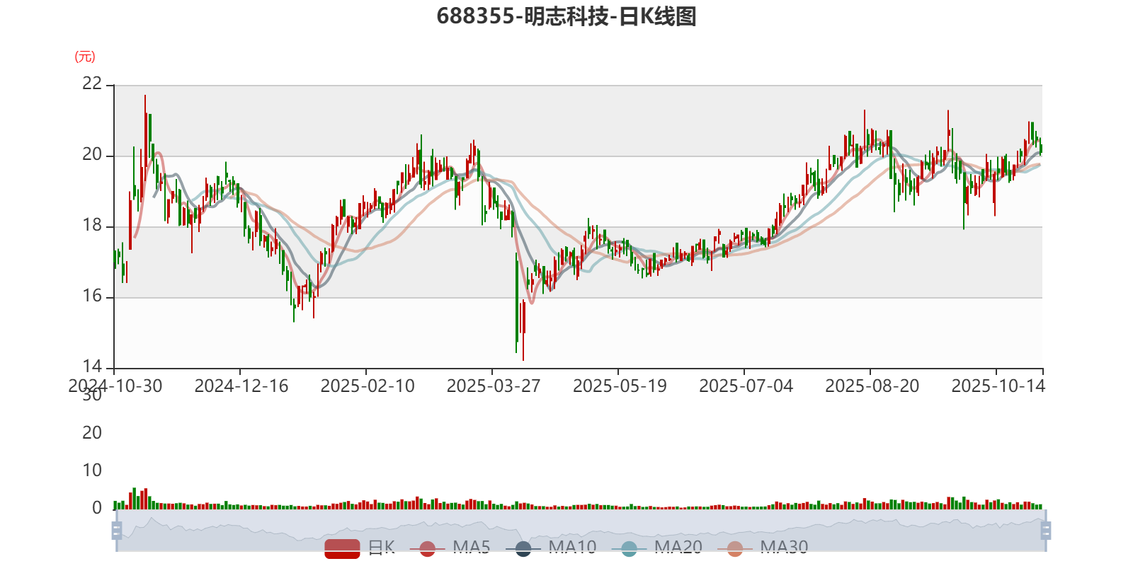 以10月29日收盘价计算,明志科技目前市盈率(TTM)约为43.27倍,市净率(LF)约2.34倍,市销率(TTM)约4.4倍。