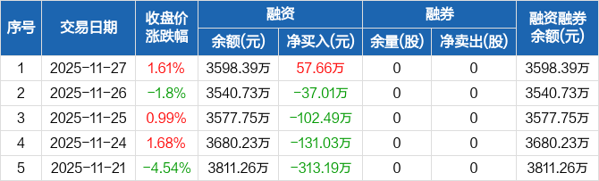 明志科技:融资净买入57.66万元,融资余额3598.39万元(11-27)