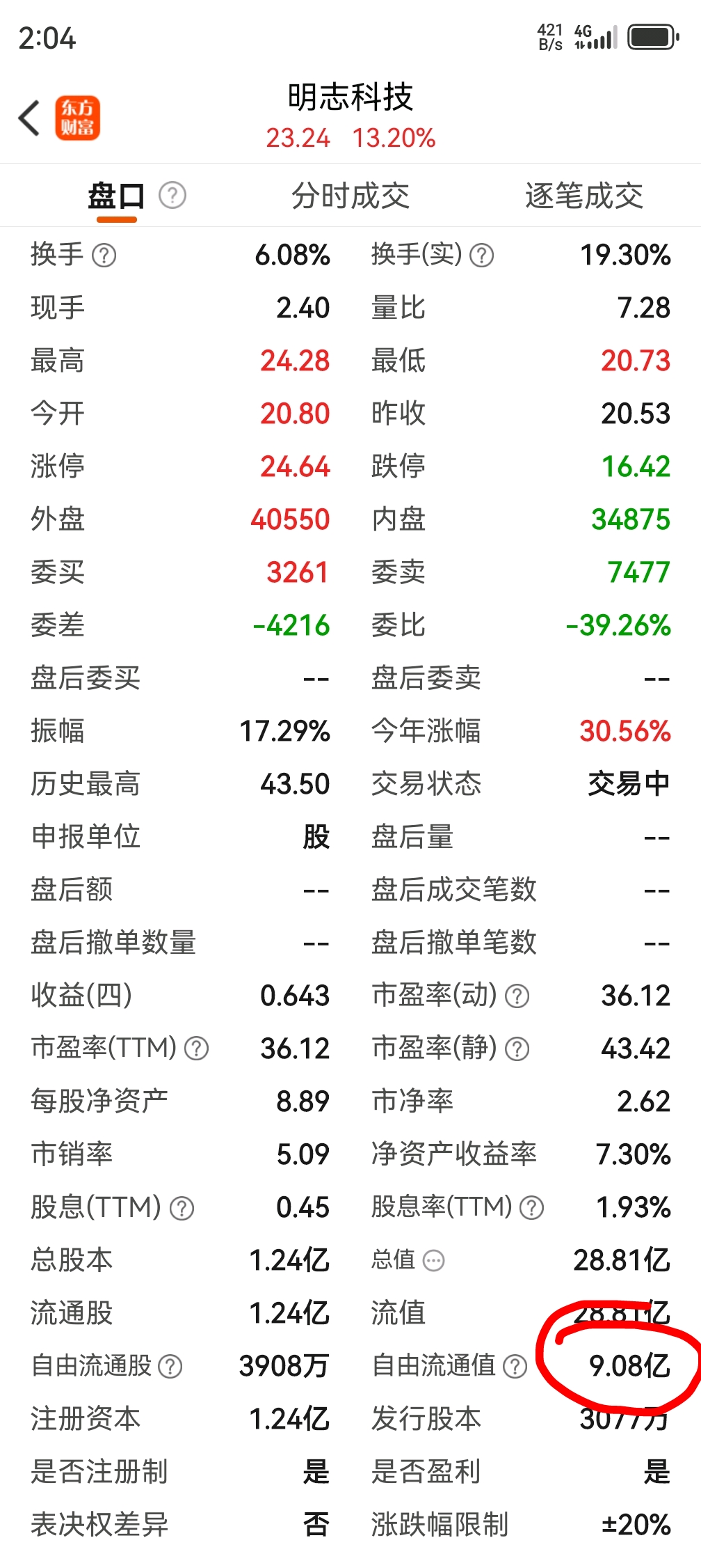 $明志科技(SH688355)$ 盘子只有九个亿,主力来了分分钟拉涨停