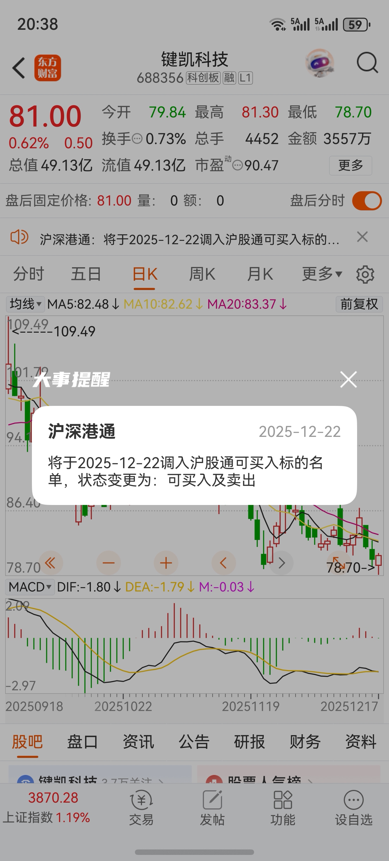 $键凯科技(SH688356)$ 沪股通能不能把你拉起来啊