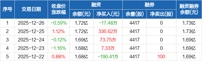 键凯科技:融资净偿还17.48万元,融资余额1.72亿元(12-26)
