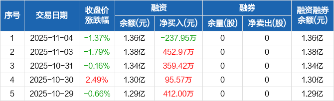 建龙微纳:融资净偿还237.95万元,融资余额1.36亿元(11-04)