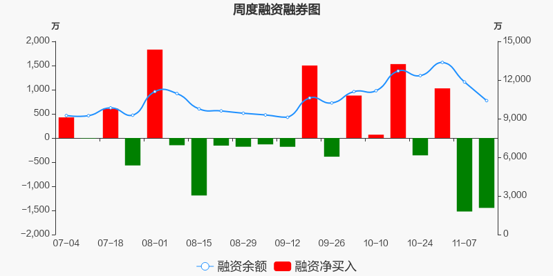 建龙微纳本周(2025/11/10-2025/11/14)累计跌幅达0.26%,截至11月14日最新股价报收38.82元。从增量上来看,11月10日至11月14日融资买入交易规模5991.51万元,融资偿还规模7438.63万元,期内融资净偿还1447.12万元。从存量上来看,截止11月16日,建龙微纳融资融券余额1.04亿元,其中融资余额规模1.04亿元,融券余额规模0元。