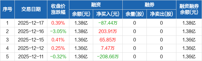 建龙微纳:融资净偿还87.44万元,融资余额1.38亿元(12-17)