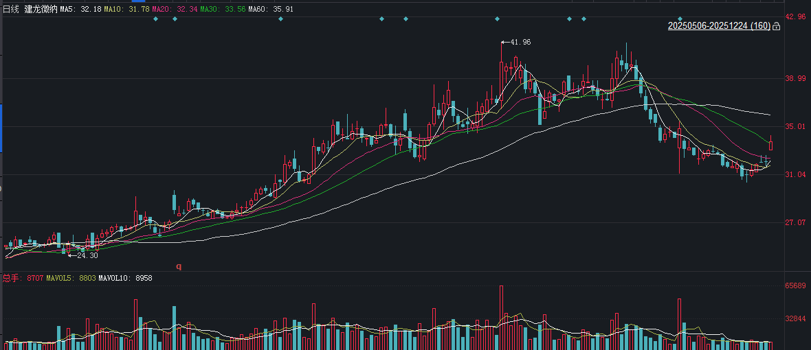 二级市场上,截至12月24日9点35分,建龙微纳上涨6.22%报33.99元/股,总市值约34亿元,今年来公司股价累计上涨超五成。