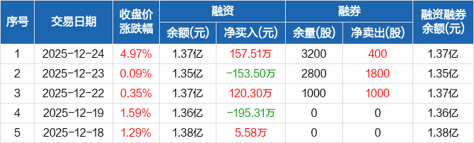 建龙微纳:融资净买入157.51万元,融资余额1.37亿元(12-24)