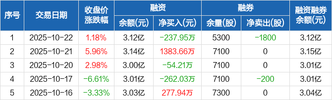 三孚新科:融资净偿还237.95万元,融资余额3.12亿元(10-22)