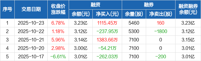 三孚新科:融资净买入1115.45万元,融资余额3.23亿元(10-23)
