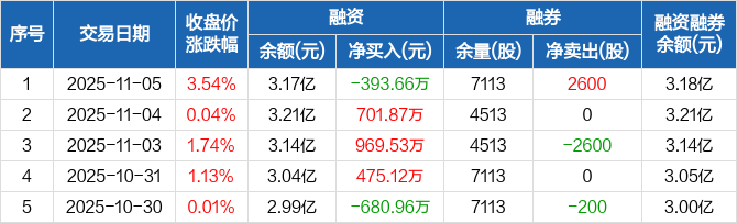 三孚新科:融资净偿还393.66万元,融资余额3.17亿元(11-05)