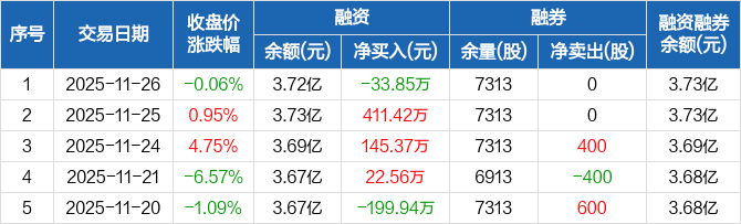 三孚新科:融资净偿还33.85万元,融资余额3.72亿元(11-26)