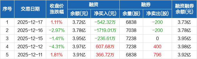 三孚新科:连续3日融资净偿还累计2497.93万元(12-17)