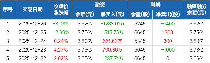 三孚新科:融资净偿还1283.61万元,融资余额3.62亿元(12-26)