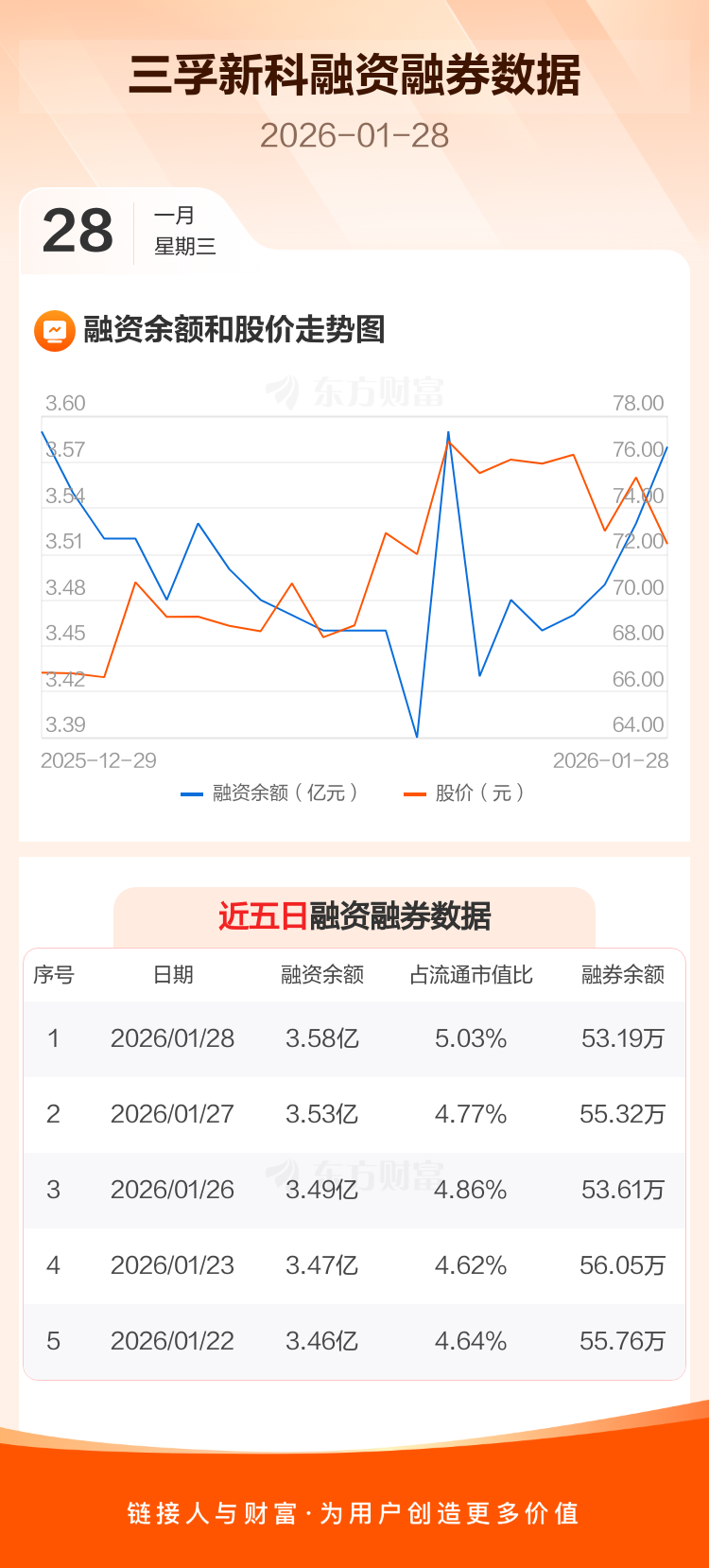 交易所最新数据显示,三孚新科于2026年1月28日获融资买入1933.08万元,融资偿还1427.70万元,当日融资净买入505.38万元。目前,该股融资余额3.58亿,占流通市值比例为5.03%。