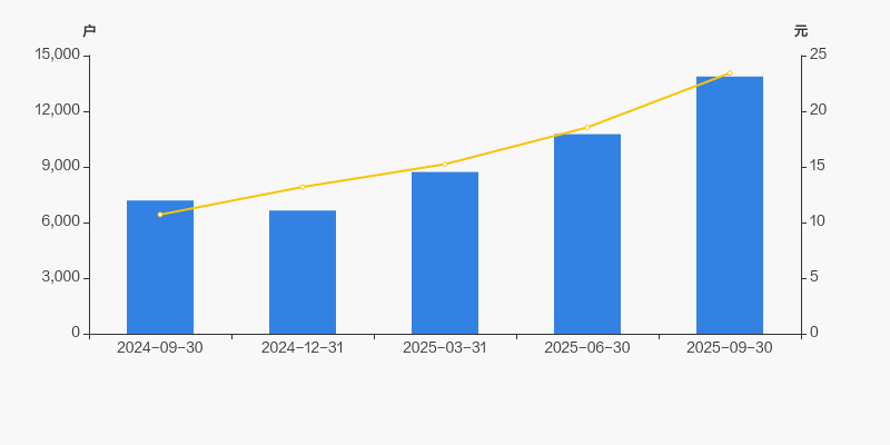 自2024年12月31日以来,公司股东户数连续3期上涨,截至目前增幅为108.82%。2024年12月31日至2025年9月30日区间股价上涨77.61%。