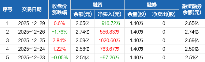 德马科技:融资净偿还916.72万元,融资余额2.65亿元(12-29)
