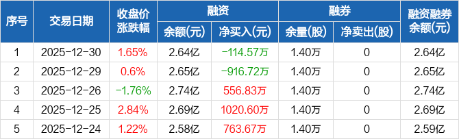 德马科技:融资净偿还114.57万元,融资余额2.64亿元(12-30)