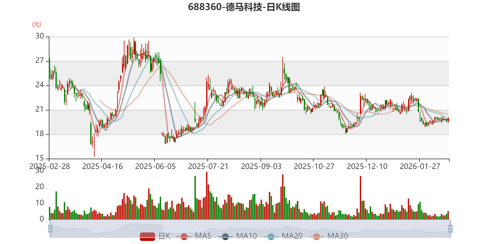 中证智能财讯德马科技(688360)2月27日晚间披露2025年业绩快报,公司实现营业收入17.02亿元,同比增长16.77%;归母净利润9349.69万元,同比增长1.06%;扣非净利润7767.56万元,同比下降6.61%;基本每股收益0.35元,加权平均净资产收益率为6.60%。以2月27日收盘价计算,德马科技目前市盈率(TTM)约为56.39倍,市净率(LF)约3.59倍,市销率(TTM)约3.39倍。