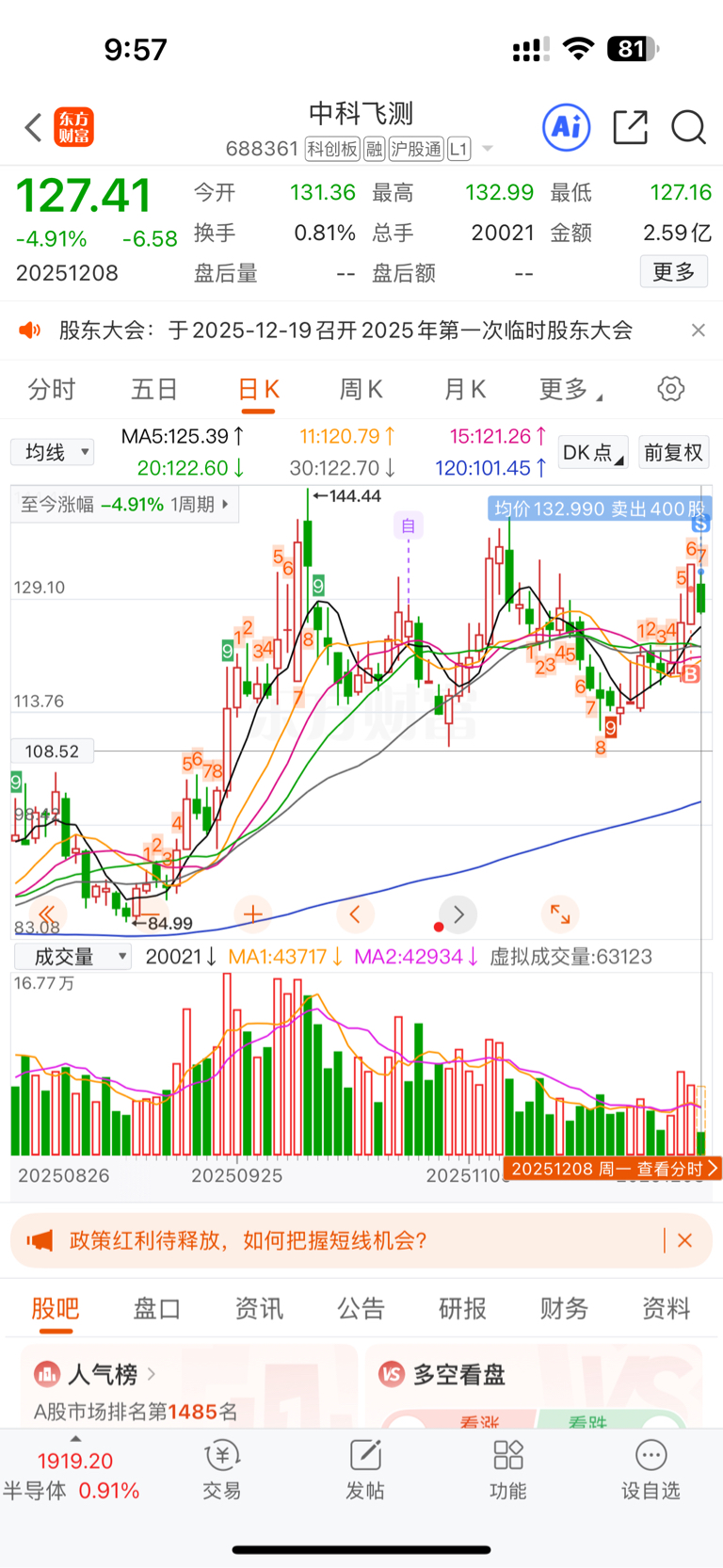 $中科飞测(SH688361)$ 今天有点运气,挂的132.99跑的