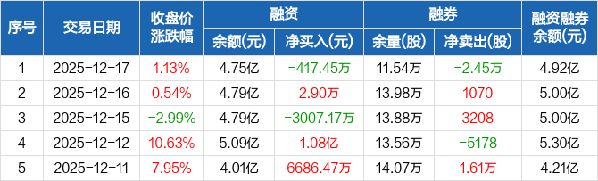 中科飞测:融资净偿还417.45万元,融资余额4.75亿元(12-17)