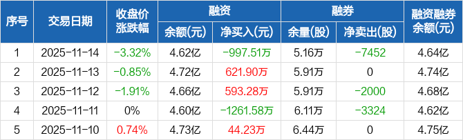甬矽电子:融资净偿还997.51万元,融资余额4.62亿元(11-14)