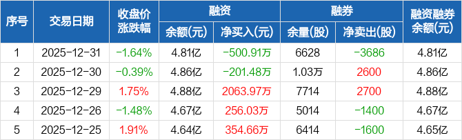 甬矽电子:融资净偿还500.91万元,融资余额4.81亿元(12-31)