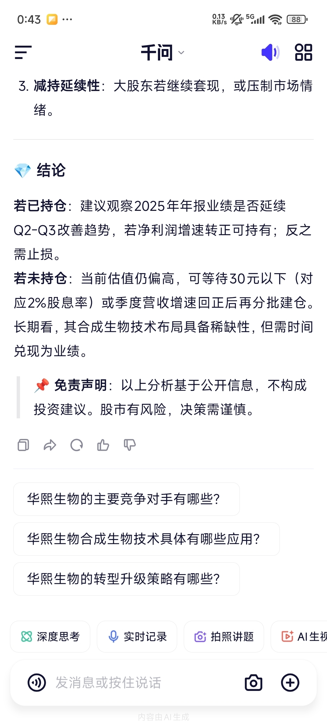 $华熙生物(SH688363)$ 46.99已买入,明天48我就卖,因为ai告诉我,等30