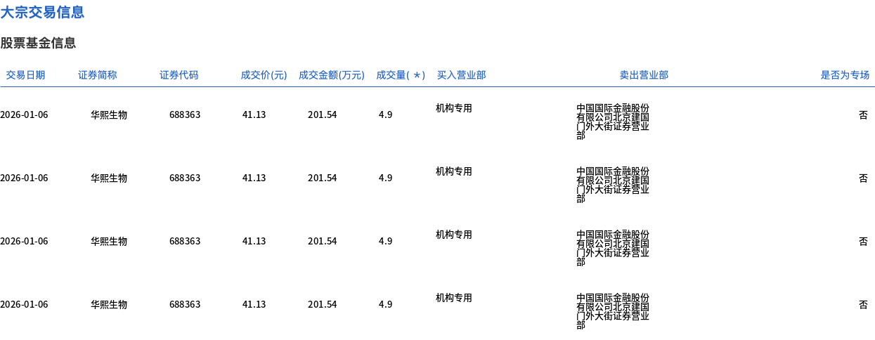 华熙生物今日大宗交易折价成交200.8万股,成交额8258.93万元