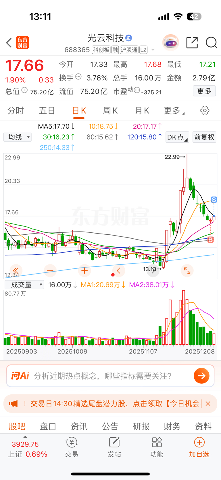 $光云科技(SH688365)$ 谢谢主力,留下的发财