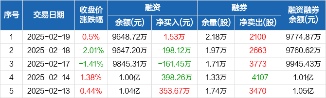 昊海生科:融资净买入1.53万元,融资余额9648.72万元(02-19)