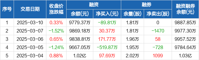 昊海生科:融资净偿还89.81万元,融资余额9779.37万元(03-10)