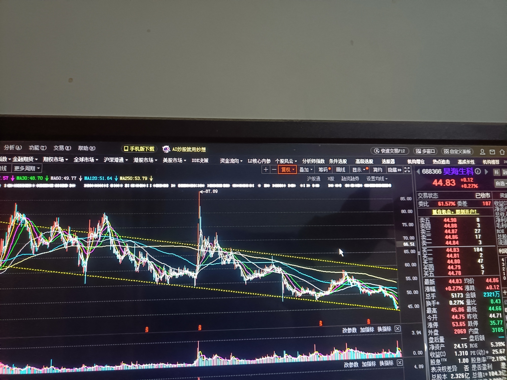 $昊海生科(SH688366)$ 做空的主力,有本事你把下面趋势线跌穿,跌十个点我加20的仓位!