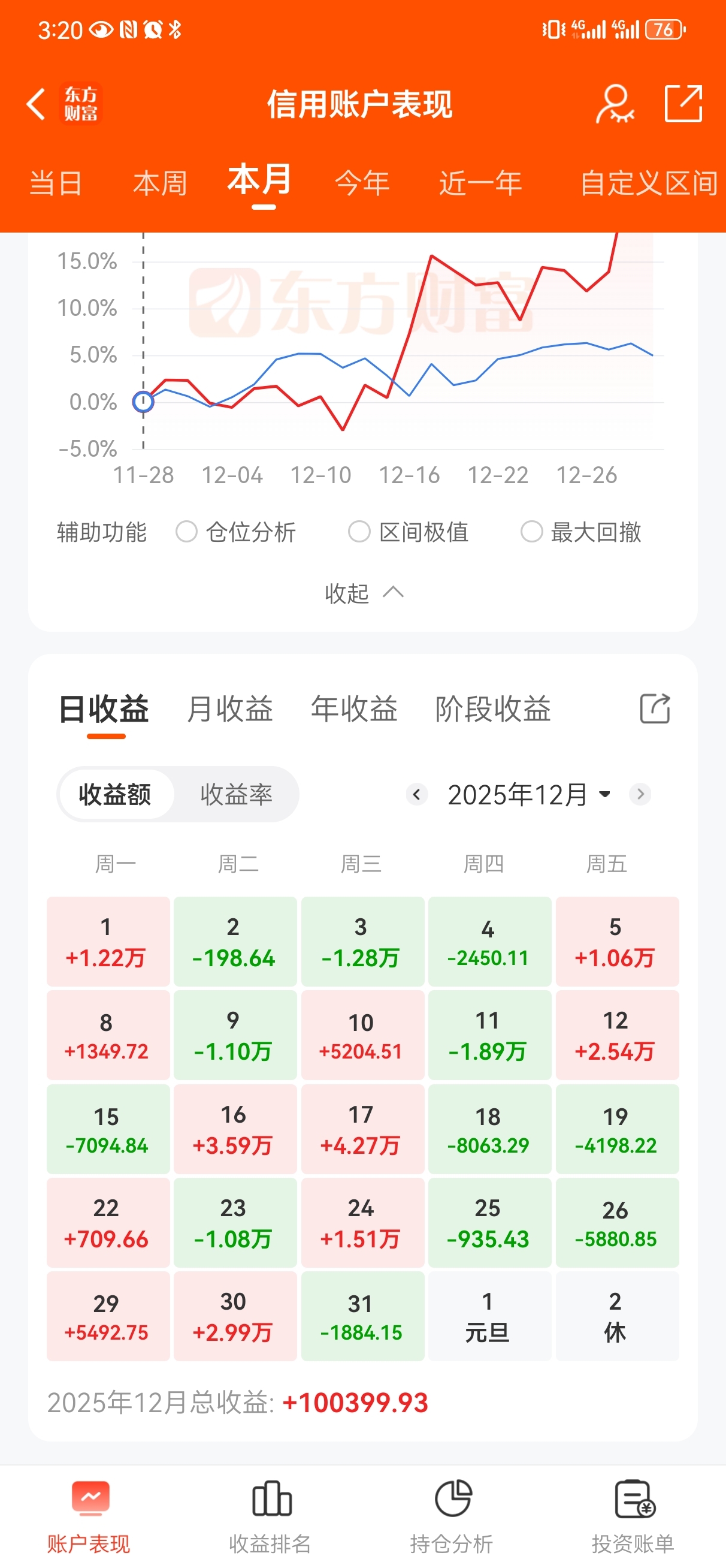 昊海生科每次涨都是一点点,跌起来可猛了。还好最近卓还可以。今年结束了。这个月算是比较好的结果了。祝各位26年大赚。