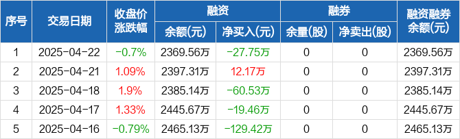 工大高科:融资净偿还27.75万元,融资余额2369.56万元(04-22)