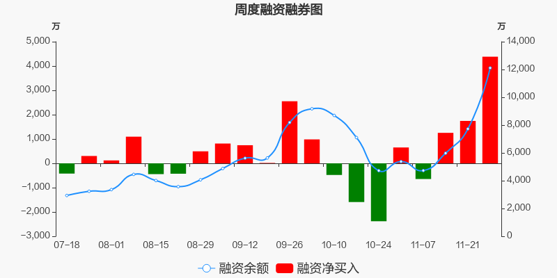 工大高科本周(2025/11/24-2025/11/28)累计涨幅达28.52%,截至11月28日最新股价报收33.98元。从增量上来看,11月24日至11月28日融资买入交易规模1.47亿元,融资偿还规模1.03亿元,期内融资净买入4383.48万元。从存量上来看,截止11月30日,工大高科融资融券余额1.21亿元,其中融资余额规模1.21亿元,融券余额规模0元。