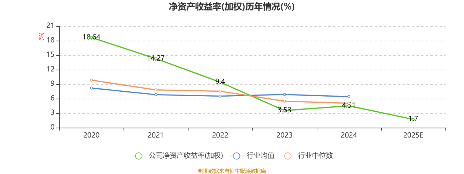 数据显示,2025年公司加权平均净资产收益率为1.7%,较上年同期下降2.81个百分点。