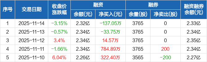 晶丰明源:融资净偿还137.05万元,融资余额2.32亿元(11-14)
