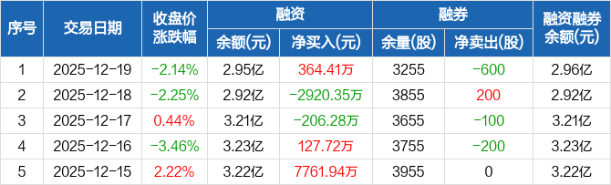 晶丰明源:融资净买入364.41万元,融资余额2.95亿元(12-19)