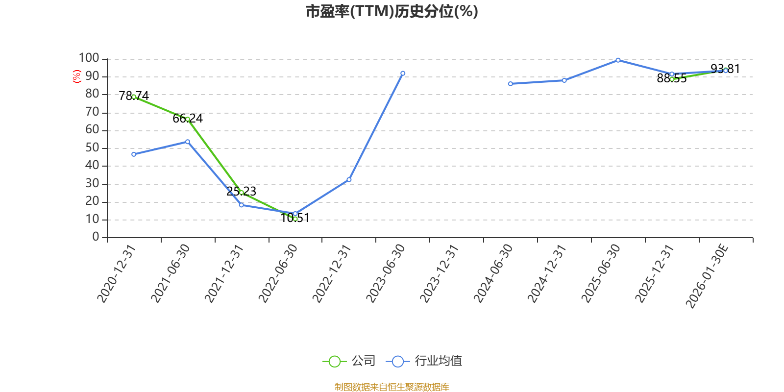 市盈率、市净率为负时,不显示当期分位数,会导致折线图中断。