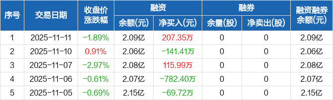 致远互联:融资净买入207.35万元,融资余额2.09亿元(11-11)