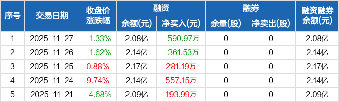 致远互联:融资净偿还590.97万元,融资余额2.08亿元(11-27)