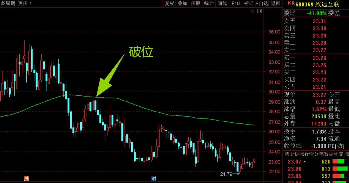 $致远互联(SH688369)$ 中期趋势走弱了,前期高位回落下来,跌破了安全线没有马上拉回去站稳,就需要大幅减仓应对了,不然回落到现在很被动。目前来看没有反转的意思,整体还是回落趋势,不考虑参与,等后面拉起来站稳了再说,不着急。#炒股日记# #收盘点评#