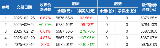 菲沃泰:融资净买入92.56万元,融资余额5876.65万元(02-25)